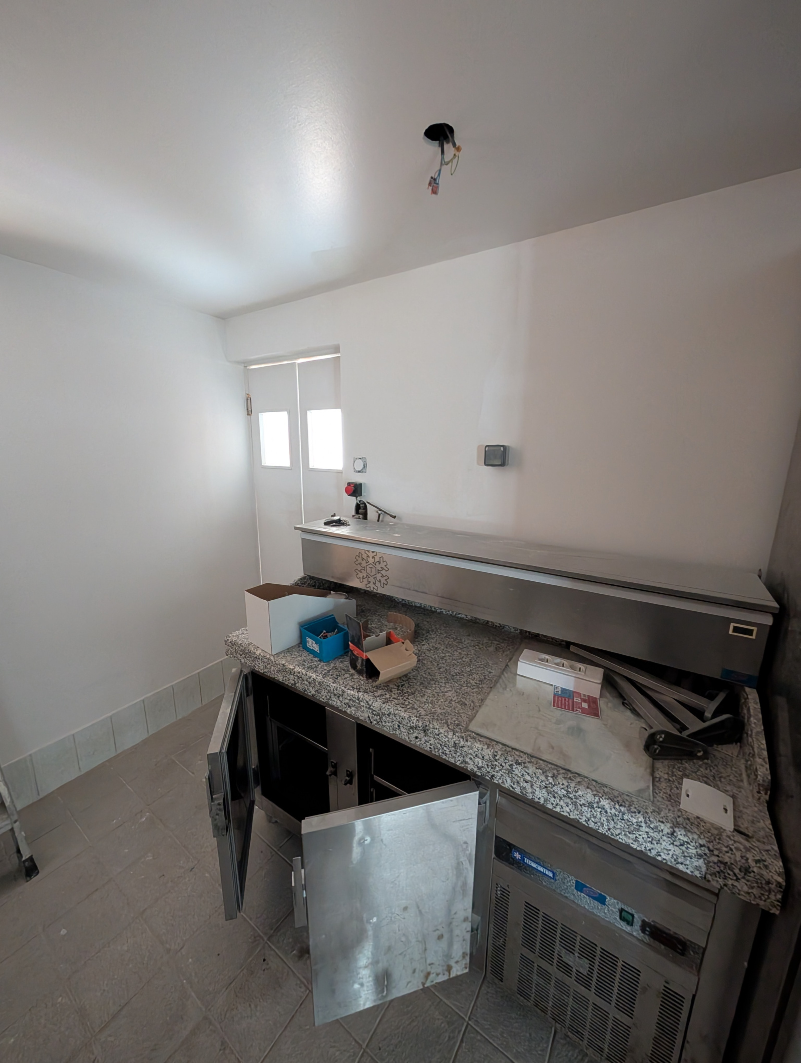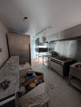 Local commercial d'environ 40 m², au coeur du village, avec comptoir, petite salle, cuisine équipée avec four à pizza, frigo, bac de plonge, etc...