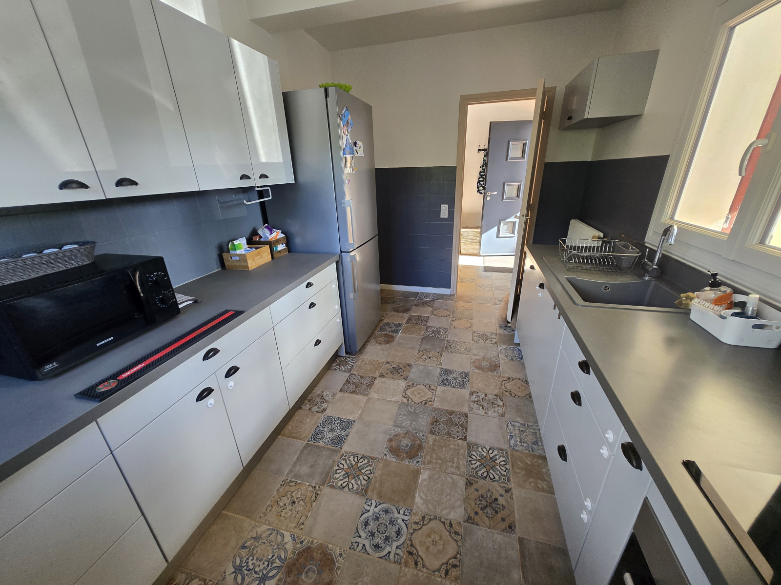 En bas de villa, très bel appartement 3 pièces ensoleillé en rez de jardin . Il est composé d'une belle entrée desservant un salon lumineux comminiquant avec une belle et spacieuse cuisine équipée, un couloir desservant les deux belles chambres avec rangements, la salle de bain et un wc séparé.